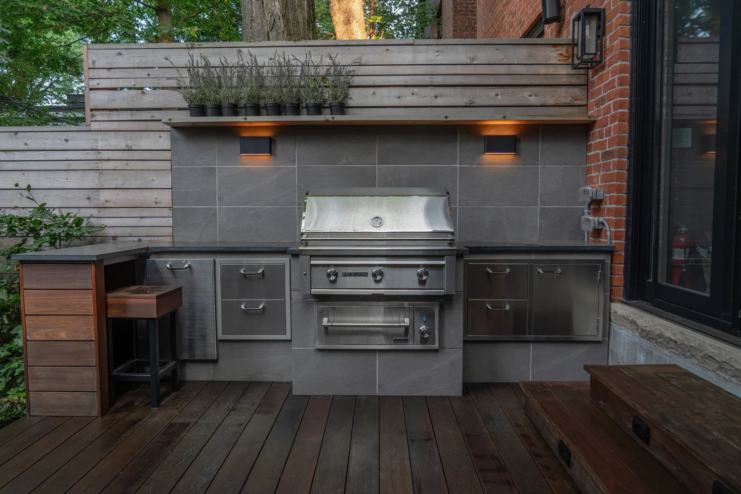 When laying them, we made sure each stone was perfectly even with its companions around it. This is really an important step because any little unevenness can create tripping hazards, and it just doesn’t look right. With the stones now in place and secure, we began working the joints. Over time, grouting between the stones had cracked, which, besides making the patio look worn, weakened the structure. We had refilled the cracks with new grout, matching the colour with great attention to how it originally had been. The end result was a clean, even finish that made the patio look beautiful.